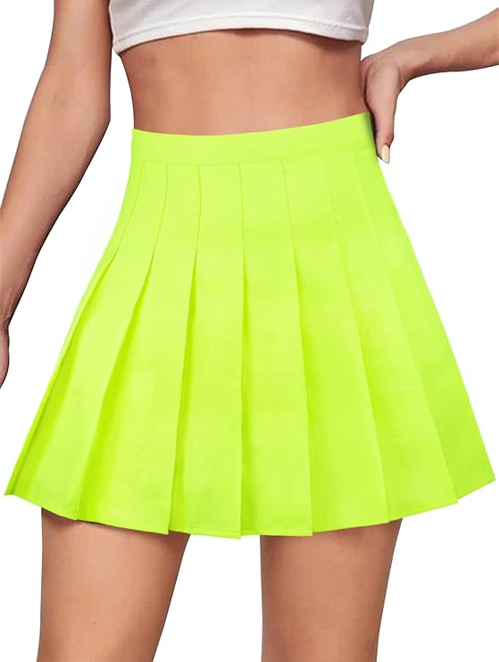 Stand out with this striking neon yellow pleated tennis skirt. The bold color makes a fashion statement, while the pleated design adds a touch of elegance. The high-waisted fit ensures comfort and style, making it perfect for sports, festivals, or casual wear.
